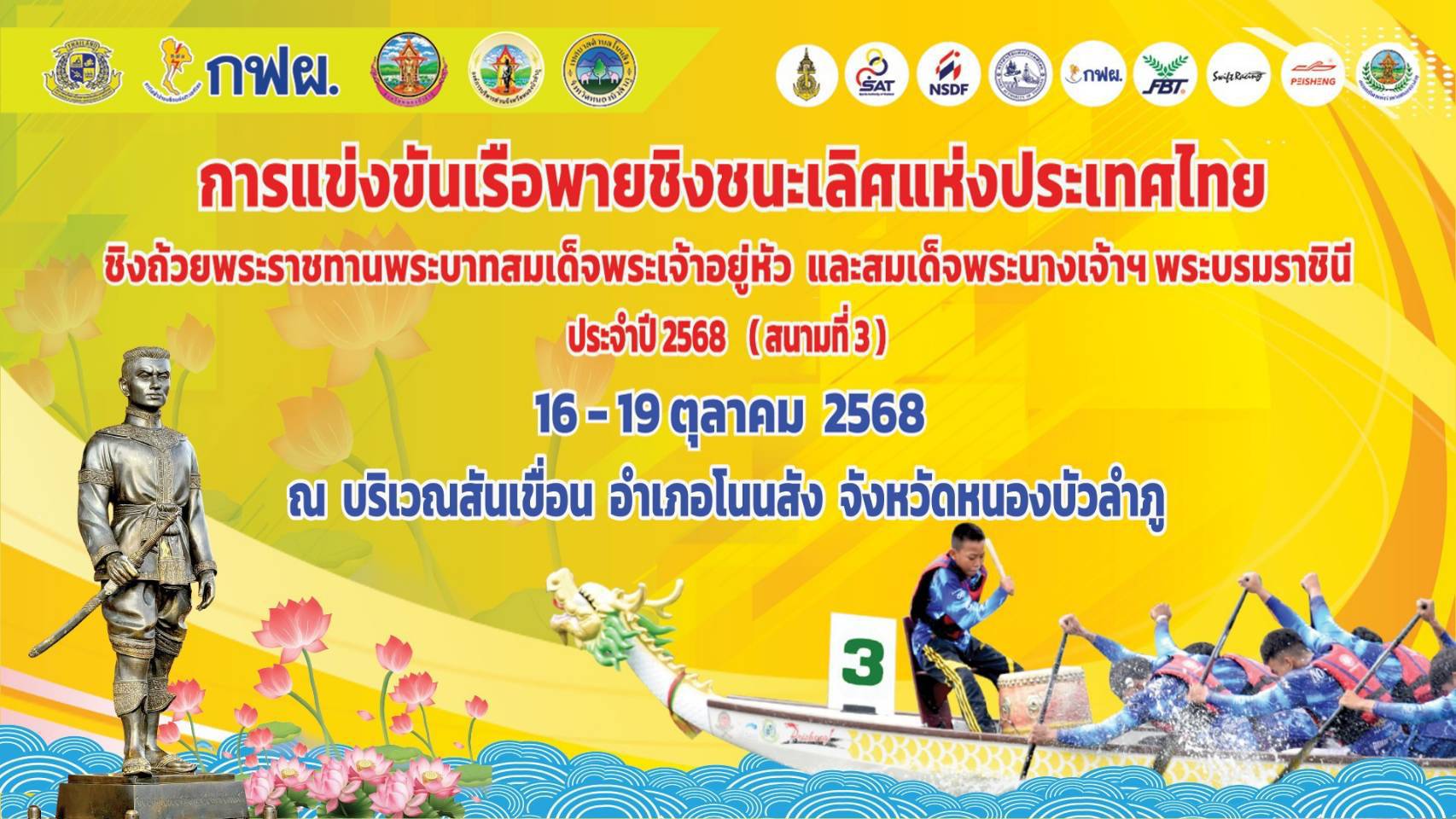 การแข่งขันเรือพายชิงชนะเลิศแห่งประเทศไทยrnชิงถ้วยพระราชทานพระบาทสมเด็จพระเจ้าอยู่หัว และสมเด็จพระนางเจ้าฯ พระบรมราชินีrnประจำปี ๒๕๖๘ สนามที่ ๓rn
